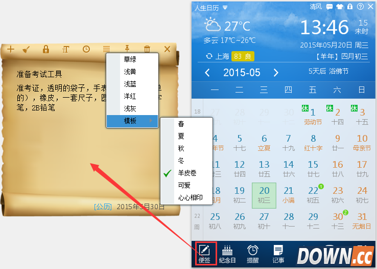 人生日历,是每位考生及家长的好帮手,无论是高考复习安排,还是生活作息,点点滴滴都有人生日历定时提醒您,绝不遗漏任何重要的事情。最后,人生日历为2015年高考加油助威! |