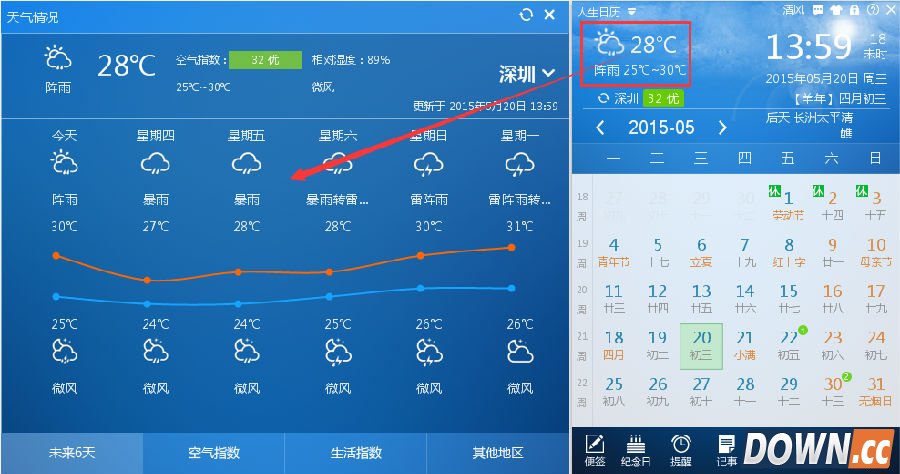最后,每天的天气预报也需要注意。每天提前看第二天的天气预报,如需要,应准备好遮阳镜、风油精之类的防暑用品,或者带好雨具。如果要骑自行车,要提前打好气,检查车闸等有没有问题等。人生日历实时预报未来一周的天气情况,让考生和家长及时了解天气,如下图,连续的暴雨,考生出行就得多注意了。