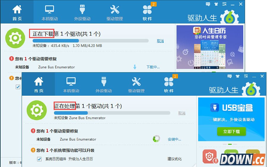 耐心等待驱动人生下载并安装未知设备的驱动程序,在这期间,不需要进行任何的操作。