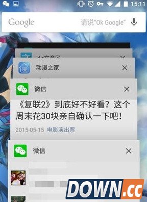 接着回到主界面,看上去微信似乎没有什么变化。但是,从此以后,当你在微信中阅读文章时,只要呼出安卓的多任务菜单,就会发现,文章页已经独立出去,成为一个多任务标签了、
