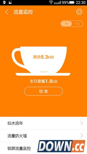 3、看到本月剩余的流量以及“似水流年”、“流量防火墙”、“锁屏流量监控”三个选项。