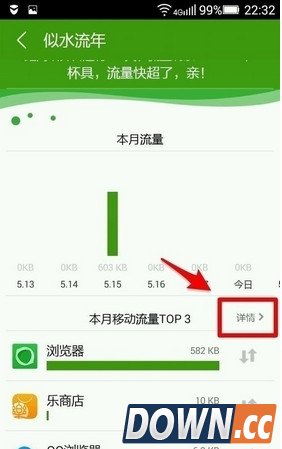 5、继续点击右侧的“详情”还会看到所有应用的消耗流量的情况。我们也可以直接点击“流量防火墙”进入查看。
