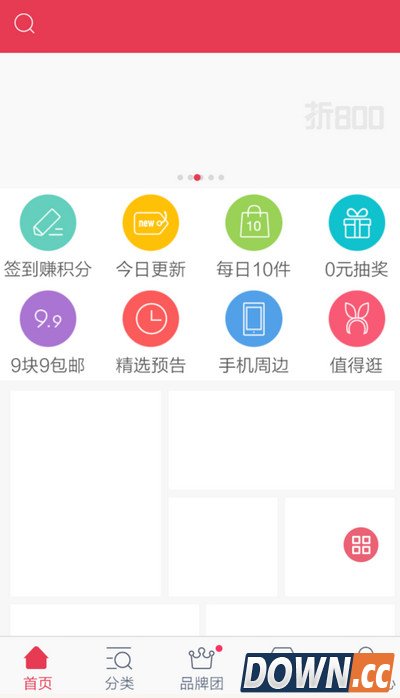 5、我们可以看到里面有【9.9包邮】、【签到赚积分】、【0元抽奖】等