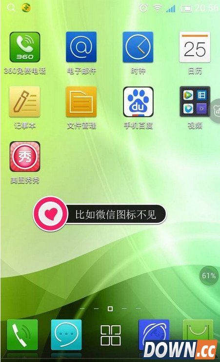 生活中总有一些熊孩子在你的身边晃悠,他们时不时拿你的手机玩玩这个看看那个,然后一个不小心这个删掉了,那个图标不见了。下面小编就为大家分享一下百加手机桌面的图标误删了怎么找回 1、小编就拿最一个示范,微信图标删掉了