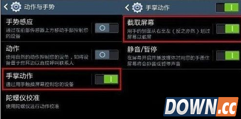 5.向右滑动【手掌动作】选项右侧的长方形滑块,显示绿色代表已开启,然后点击【手掌动作】。