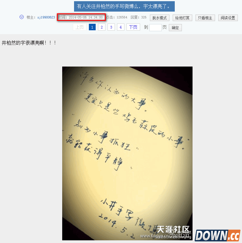其实早在2014年网上就对井柏然的字体有过热议。比如知名社区: