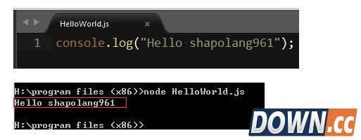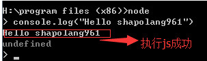 3.2 通过node命令 执行 编辑HelloWorld.js文件输入console.log("Hello shapolang961"); 在命令行执行: node HelloWorld.js