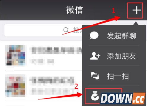 2、微信成功安装后,登录自己的账号,然后在主页点击右上角的“+”按钮,在弹出的窗口中再点击“收钱”这个选项。