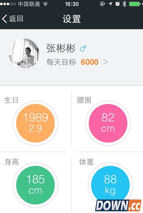 3、需要设置一些什么大家自己点击设置即可,在初次使用乐心微动时你需要输入一些你的个人数据,完成后它会根据你目前的身体素质指标给出一个合适你的“每天运动指标”。在我的成就中,你可以查看自己的级别,总共行走的步数,行走的总距离以及消耗的卡路里情况