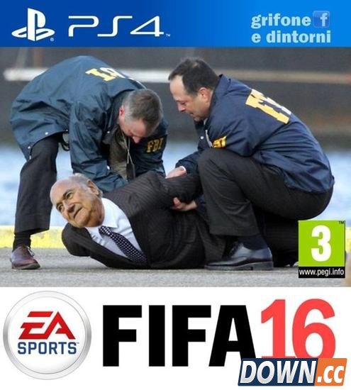 《FIFA》系列的游戏往往都是以知名选手作为游戏封面但这次的贪污事件爆发后便引起了恶搞潮,玩家开始将布拉特的部分照片进行修改,直接套用上《FIFA16》的LOGO作为游戏封面设计,对于准备在近期发布《FIFA16》消息的EA Sports来说还真的是有点尴尬。 |
