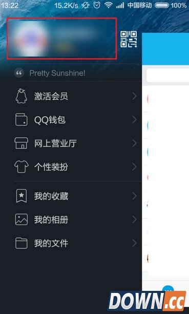 2、进入手机QQ主界面以后,直接点击左上方自己的QQ头像,呼出左侧的菜单项目,然后再次点击自己的头像,如下图所示。