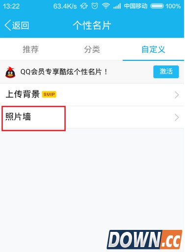5、接下来弹出的页面中,我们终于看到了“照片墙”设置菜单啦,隐藏的还挺深,至于第一个背景图片由于我们不是QQ会员,所以就不用点击第一个功能啦,直接点击照片墙按钮。