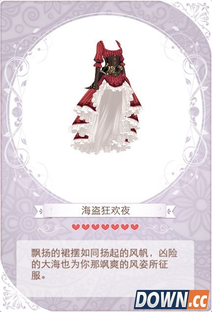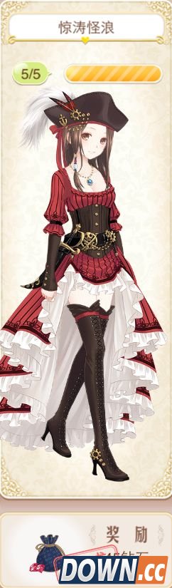 头发:海上探险家 七颗星 连衣裙:海盗狂欢夜 七颗星 鞋子:惊涛怪浪 七颗星 头饰:帽险家 七颗星 颈饰:大航海之心 七颗星