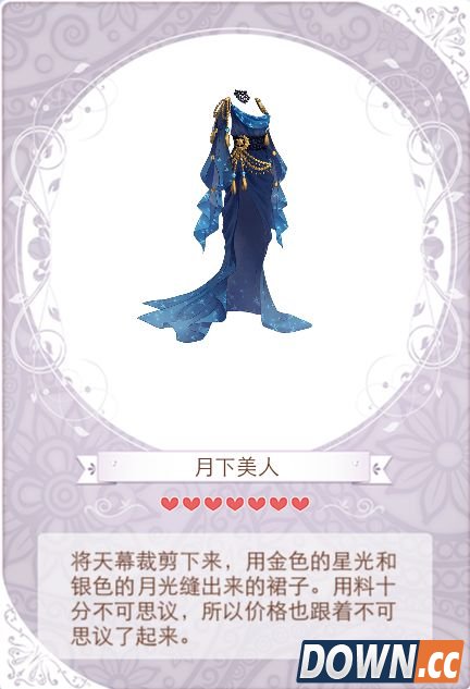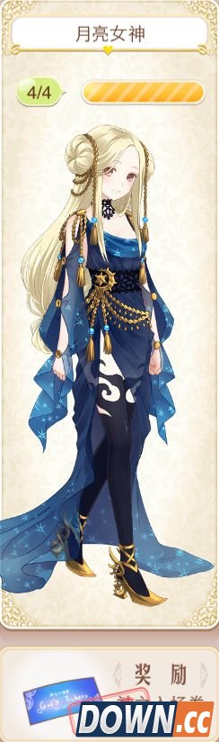 奖励:神之入场券 头发:狄安娜 七颗星 连衣裙:月下美人 七颗星 袜子:月下骑士 七颗星 鞋子:月神的战靴 七颗星