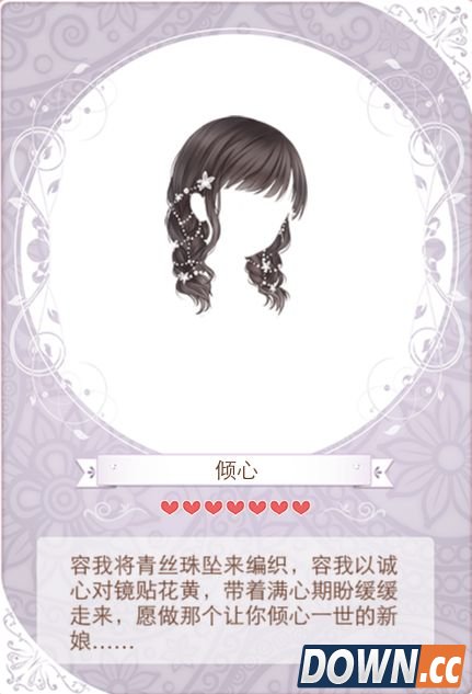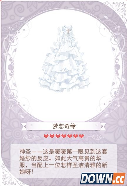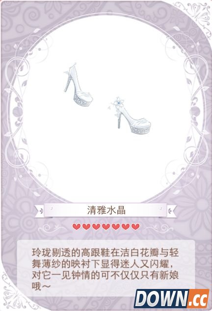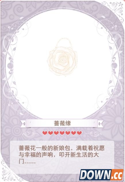 头发:倾心 七颗星 连衣裙:蔷薇花嫁 七颗星 袜子:爱意浓浓 七颗星 鞋子:坚贞花誓 七颗星 头饰:璀璨头纱 七颗星 提包:蔷薇缘 七颗星