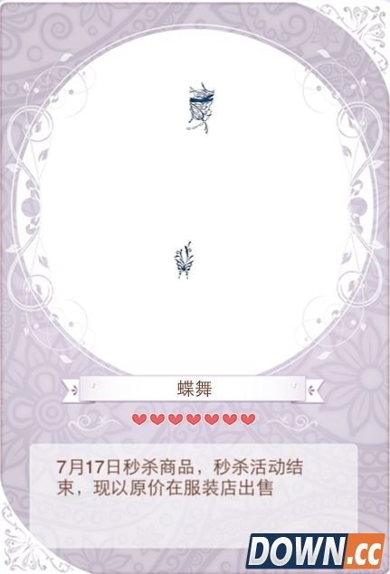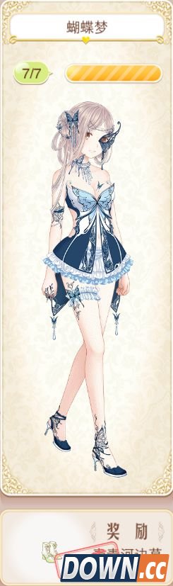 头发:蝶恋花 七颗星 连衣裙:迷蝶夜 七颗星 袜子:蝴蝶袜圈 七颗星 鞋子:化蝶 七颗星 颈饰:蝶泪 七颗星 手饰:蝶舞 七颗星 特殊:蝶恋 七颗星