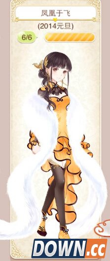 凤凰于飞套装获取方式: (目前只能在幻之阁抽取) 头发:凤凰来仪 七颗星 连衣裙:飞龙凤舞 七颗星 袜子:凤冠 七颗星 鞋子:凤舞鸾歌 七颗星 耳饰:凤凰·耳环 七颗星 颈饰:凤凰·皮草 七颗星锦瑟年华