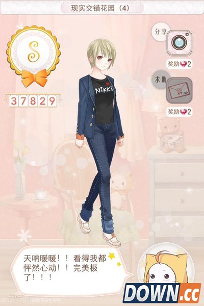 发型:小王子 外套:靛蓝外套 上衣:暖暖短衫 下装:直筒牛仔裤 袜子:普通短袜 鞋子:白色小皮鞋 197现实交错花园(5)