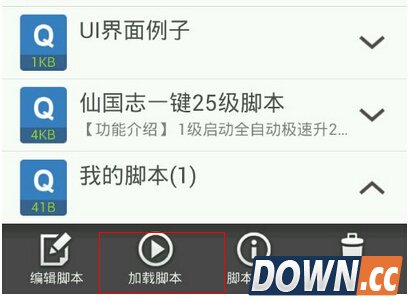 5、再次返回脚本列表,会在最下面有个“我的脚本1”,这个就是刚刚添加的脚本,选择“加载脚本”,完成加载后会自动返回手机主界面的,这个是运行成功的表现。