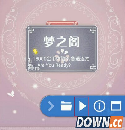 7、进入梦之阁后,点开小箭头,在抽卡的倒计时的时候,选择播放键,如果要停止的话按下手机侧面的减小音量的按钮,脚本就会停止了