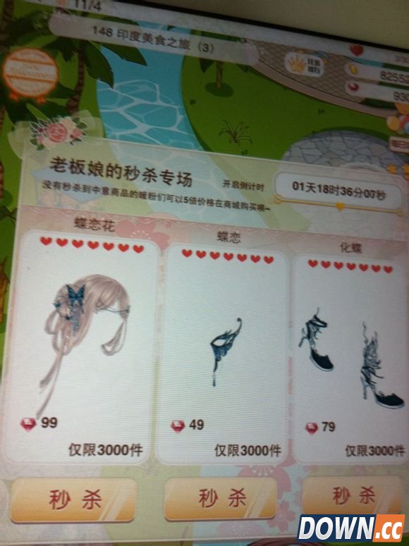所需钻石: 蝶恋花: 99钻 仅限3000件 蝶恋: 49钻 仅限3000件 化蝶: 79钻 仅限3000件 秒杀时间:8月7日 |