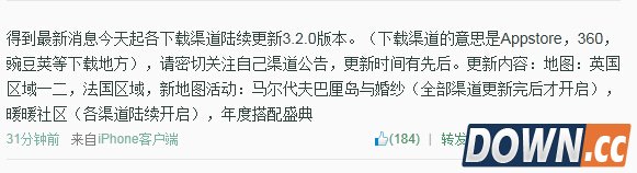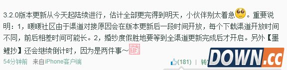 暖暖官方微博公告 更新时间:今天起各下载渠道陆续更新3.2.0版本,(下载渠道的意思是Appstore,360,豌豆荚等下载地方),请密切关注自己渠道公告,更新时间有先后。 更新内容:地图:英国区域一二,法国区域,新地图活动:马尔代夫巴厘岛与婚纱(全部渠道更新完后才开启),暖暖社区(各渠道陆续开启),年度搭配盛典。 墨鲤抄套装图鉴: