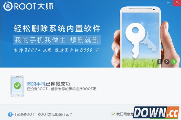 手机成功连接后,点击“一键ROOT”开始ROOT!