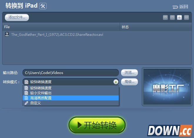 魔影工厂,全面支持苹果家族产品!魔影工厂为风靡全球的苹果系列产品提供了全面的格式支持!作为WinAVI视频转换器的简体中文版,魔影工厂为移动设备播放需求做出改进,特别针对苹果系列产品:iPhone,iPod,iPod touch,iPad等提供专门的匹配格式。 由于苹果产品具有对高清视频的支持能力,如iPad和Apple TV等,因此魔影工厂在转换模式中加入默认1280*720高清画质配置。