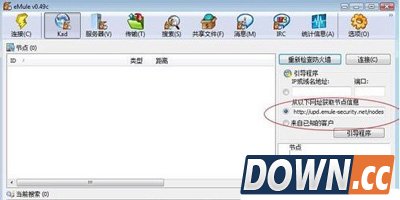 链接地址(以下nodes.dat更新链接任选其一使用即可,不需要都加载): 1、http://upd.emule-security.org/nodes.dat 2、http://kademlia.ru/download/nodes.dat 3、http://sn.im/nodes.dat |