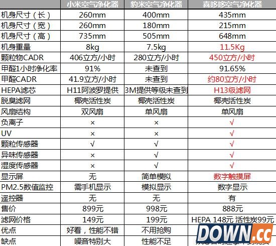 3平米H13顶级HEPA过滤网+1kg椰壳活性炭售价分别为149元+99元 为了方便大家能够快速的对比三款产品,我简单的整理了一个表格。从表格中,我们就可以明显的看到喜哆哆XD480W空气净化器在千元空气净化器市场中有多么突出的优势。 喜哆哆XD480W空气净化器的最大缺点,就是目前只是在众筹阶段,现在下单估计要到3月才能拿到净化器。如此好产品,如此低廉的价格,我觉得如果你没有钱购买其他净化器,又不是很着急的话,这款空气净化器要比小米更靠谱一些。我已经在京东众筹下单,这888元值得为你的健康投资。等着,到货后,我会给家做第一时间的拆箱分享。