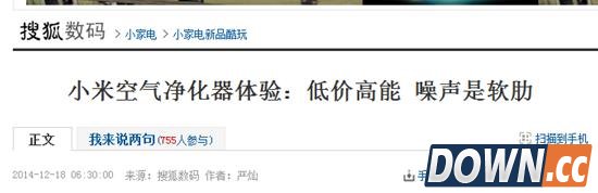 噪音是小米空气净化器的最大问题 小米净化器基本可以和售价2699元的夏普Z380SW(后期的BD60S)一个水准,一个字形容这个产品“值”。当然缺点也是有的,就是噪音大,购买难。用论坛一位朋友的话说,就是“大的无法让人接受”,睡眠模式都要40多分贝,让这个产品只能放在客厅使用。