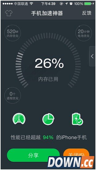 近日,小编注意到了App Store热搜榜上出现了一款主打手机加速的手机软件——“手机加速神器”。据小编了解,目前很多手机清理软件都号称可以清除手机垃圾,提高运行速度,但真正奏效的并不多见,所以一般的手机加速软件并不受用户待见。而这款最新的“手机加速神器”却能走红网络、长时间占据App Store 热搜榜TOP10。是不是它能带给我们全新的软件体验呢?小编现在就和大家一起去体验一下,这个号称App Store里首款专业的iOS手机加速软件是否如传说中那么给力。 ![]() 基础功能 ★★★★★ 手机卡顿是很多手机用户都会遇到的问题,但真正能解决手机卡顿的方法确实不多,尤其在封闭的iOS系统下,几乎没有给力的软件能解决手机卡顿问题。“手机加速神器”的出现可以说是直击用户需求。 ![]() 小编在使用“手机加速神器”的内存清理功能前,手机的运行内存资源(系统运行内存)已用84%,已经略微感受到手机的卡顿。而“手机加速神器”的清理加速功能有基础的内存清理功能和有针对性的深度清理功能。小编在点击内存清理后,“手机加速神器”释放了将近60%的内存,而在直观的感受上,在释放了将近60%的内存后,手机的速度有了明显的提升,已经不会感到卡顿。 ![]() 而另外的深度清理功能,则是专为卡顿严重的手机而设,能对这类型的手机进行有效优化,小编特意选取了4年前买的iPhone4进行测试,这台有着4年悠久历史的老手机运行起来已经极其力不从心,打开App一般都需要“思考”半分钟才有响应。小编在使用“手机加速神器”深度清理功能后,“神器”对小编老旧的iPhone4进行了内存释放、系统优化,在进行了这系列动作后,小编的iPhone4大有返老顽童的迹象,打开App需要的“思考”时间大大减少,可见“手机加速神器”对手机加速有着明显的作用。而对于广大手机严重卡顿的用户来说,这是一个福音。 ![]() 附加功能 ★★★★☆ 倘若“手机加速神器”的功能只局限于为手机加速,那么它绝对无法挤进App热搜榜TOB10。因为现代人的需求是多样性的,一个软件如果没有多样的功能是无法征服用户的。所以,在体验到“手机加速神器”强劲的加速功能外,小编还注意到“手机加速神器”附带了不少的实用小工具,例如电池管理、空间管理、手电筒、扫二维码等功能。经小编实测都比较实用,像电池管理功能,对电池优化有较为的明显效果,小编搭载着最新iOS8系统的iPhone5c在使用“手机加速神器”的电池管理功能后电池得到了最佳优化,使手机电池使用时长得到延长。算是从根本上解决了iOS8系统下手机耗电快等问题。而像空间管理、手电筒等小功能则让小编觉得十分实用、便利,大大降低了用户的操作成本,一个“手机加速神器”就能代替N个App。 ![]() 安装包大小 ★★★★★ 用户在考虑是否下载一个手机软件时,其安装包的大小是一个十分重要的考量标准,像在无WiFi的情况下,用户下载软件总会缩手缩脚。小编每月800M的流量都会不够用,何况大多数用户每月只会开100M——300M的流量。“手机加速神器”的安装包确实够惊艳,只有2.3M,几乎可以说是在任何环境都能随便下载,不会给用户任何心理负担。小编认为,这是“手机加速神器”的一大优势,足够小的安装包让用户在下载时无所顾忌,极大促进了其下载量。 ![]() 无广告体验 ★★★★☆ 另外小编还注意到了“手机加速神器”界面极其清洁,完全没有广告植入。这么火爆的手机软件却没有任何广告植入是十分少见,绝大多数用户对广告是十分反感的,“手机加速神器”凭借其简洁且绿色环保无广告的页面加分不少! 总体 ★★★★☆ “手机加速神器”之所以能位居App Store热搜榜TOP10,原因是因为其加速功能强悍、附带的小工具也足够实用,除此之外“手机加速神器”仅为2.3M的安装包、无广告的软件使用体验也让其加分不少。小编认为,“手机加速神器”是一款能满足多需求用户的优秀手机软件,值得下载。