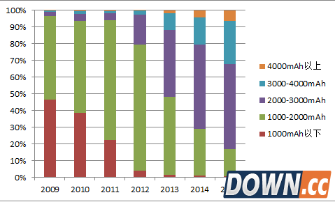 智能手机诞生以来,续航问题就是用户的一大痛点,尤其是随着网络升级、屏幕增大、应用数量增加,续航问题越来越突出。无论其他参数表现的多么优秀,续航出现问题,用户体验肯定不会好,这个指标几乎是一票否决的。 2014年5月市场调研公司IDC公布了一份消费者研究图表:56%的Android智能机用户、49%的iPhone用户、以及53%的Windows Phone用户,均表示电池表现是他们选购手机的首要考虑因素。同年10月,国内中关村在线公布了网民购机看中手机参数排行,排在第一位的也是电池容量/续航能力。 虽然用户痛点明显,但很多手机厂商都是感觉到无能为力,电池材料、技术没有按照摩尔定律发展。在这种情况下,各大手机厂商都在续航上费了些心思,只不过有些是真功夫,有些是假把式。 ![]() 电池容量不断提升,但并未完全解决用户痛点 中关村在线手机库收录了2009年以来的绝大部分市面上销售的手机,大约1万多款,以此为基础数据,笔者对手机电池容量情况进行了统计,具体如下: