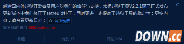 短短几个小时之后,太极团队就发布了V2.2.1版越狱工具,修复了setreuid补丁引发的安全后门。 更新日志如下: 1、修正了setreuid补丁,防止应用程序利用setreuid获取root权限。 2、进一步提高了越狱工具的稳定性。 下载地址: |