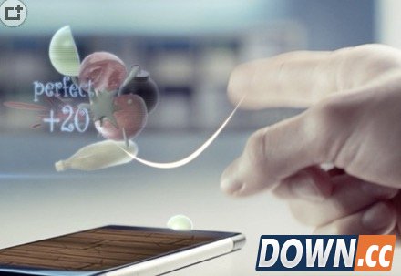 这样的全透手机简直碉堡了好吗?拿到手里就像拿着一块会变形的亚克力板一样。吃泡面的时候能垫饭盆隔热,外出遇到险情的时候还能拿来防身,实乃杀人越货居家旅行之必备良器。 ③ 全息触控手机