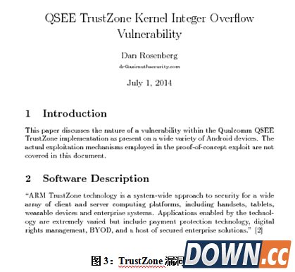 在TrustZone的硬件架构中,整个系统都是为了保护安全区中的数据,防范设备可能遭受到的多种特定威胁。因此,安全区与普通区从硬件到软件都是被分割的,普通区第三方程序无法访问安全区中的敏感数据。 体现于手机上的就是,TrustZone会把智能手机的使用模式分为两种,其一是普通使用,其二是安全使用(涉及敏感数据)。例如机主在日常游戏、打字时,手机停留在普通模式;而当机主需要支付、输入密码或者指纹时,手机就会自动切换到安全模式,保护数据不被其它程序访问。 可惜,看起来很安全的TrustZone并不值得Trust。