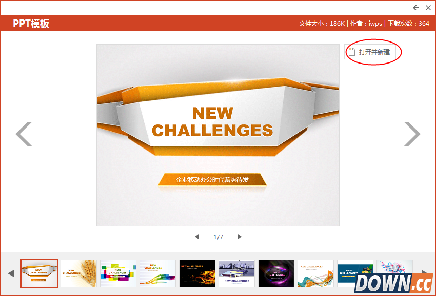 3、点击【新建】选择一个PPT模板