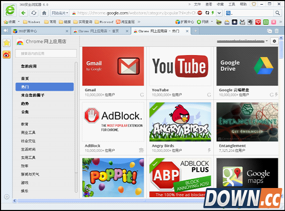 360浏览器应用商店在哪?日前,360安全浏览器发布6.0正式版,新版浏览器安全性能、上网速度大幅提升,扩展性能全面升级,应用数量倍增。且所有官方扩展应用均经过改良优化,更全面兼容Chrome网上应用商店,为用户带来更加丰富的上网体验。