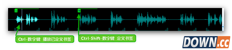 切换到一键式或两键式 鼠标右键拖选复读区间 进度条下方AB图标标注复读区间,可以拖动调整区间。 左键点击区间外以解除区间,并从点击处开始播放。 视频全屏播放的进度条也支持复读操作。 书签控制 播放时,可随时用“书签”标记某个复读区间,也可以随时播放已定义的书签。 Ctrl-Shift-数字键(0~9) 定义/删除书签 Ctrl-数字键 播放已定义的书签