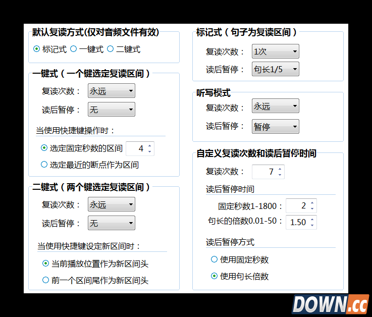 复读参数设置 菜单 ‣ 参数设置 ‣ 复读参数