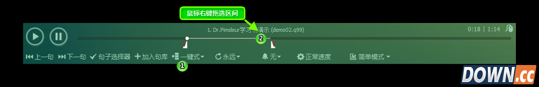 进度条控制 用进度条定义复读区间,类似普通播放器的AB段选择:
