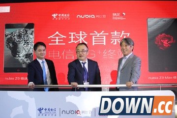 7月3日,2015年天翼终端博览会暨高峰论坛今天在南京拉开帷幕,努比亚联合中国电信和高通,共同发布全球首款支持天翼4G+网络的nubiaZ9极速版和nubiaZ9Max极速版。