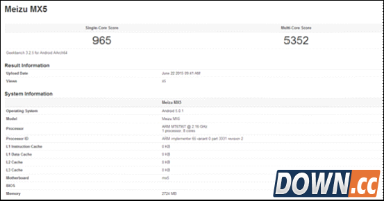 图:较早前流出的魅族MX5 Geekbench 3跑分数据 早在魅族MX5发布之前,知名跑分软件Geekbench 3就流出了魅族MX5的跑分——多线程5352分,单线程965分。而在6月30日的魅族发布会上,更爆出了魅族MX5的安兔兔跑分,高达53330的分数,让全场为之震惊。