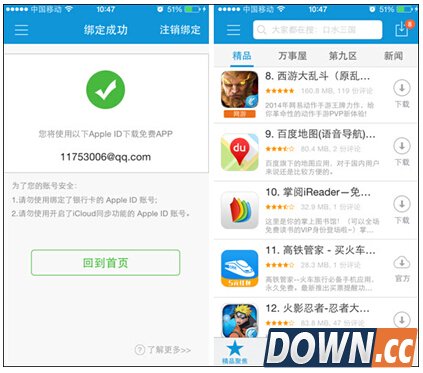 图2-绑定AppleID杜绝闪退 此外,通过同步推也能搜索和下载到海量的正版资源,这要源于同步推这款国内主流第三方应用商店长期以来对于用户体验的重视。在同步推里有各种热资源推荐榜,而且还有很多好玩的地方,比如游戏礼包的免费领取、很多有奖活动等,让这款第三方应用商店用起来很舒心。如图3所示。