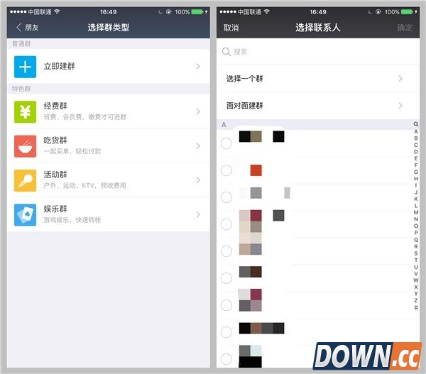 那么右上角的几个功能呢?支付宝果然没让我失望,除了收钱功能也是照抄不误,添加朋友、发起群聊和扫一扫功能一应俱全。不过建群增加了一个特色群功能,可以将群的主题选为吃货群或者娱乐群等。