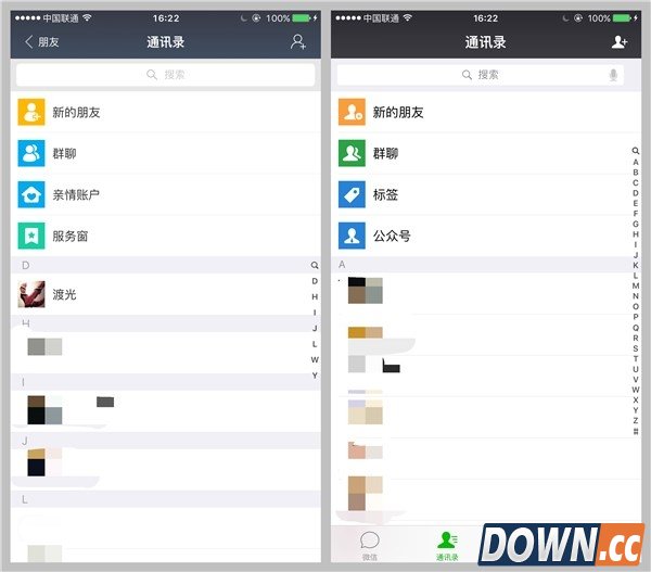 首先是支付宝的图标变成了蓝色,这对于那些强迫症患者来说可要给它安排一个新地方了,可以看到在更新详情里面可以看到支付宝对朋友功能进行了新定义,还上线了群组功能,当然更新好进入才发现实在是让人大跌眼镜。下面图片均是左为支付宝截图,右为微信截图。