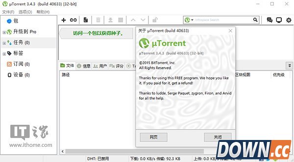 7月8日消息,国外著名BT下载工具μTorrent稳定版更新至3.4.3.40633。该版本主要修复了旧版本中存在的一些问题,增强了软件性能,安装界面也进行了重新调整。新老用户可下载升级。