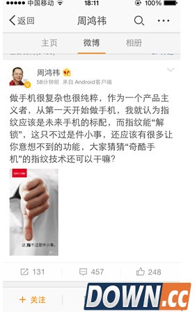 图:周鸿祎透露奇酷手机将增加更多指纹识别场景 为指纹识别增加更多应用场景 周鸿祎在微博中表示:“从第一天开始做手机,我就认为指纹应该是未来手机的标配”,这也从侧面印证了奇酷手机将搭载指纹识别系统。但之后周鸿祎也指出指纹应用场景的过于单一:“指纹能解锁,这只不过是件小事,还应该有很多让你意想不到的功能”。那么周先生的奇酷手机,会增加哪些指纹应用的场景呢? 根据之前网友猜测,不同指纹对应不同界面或许就将是诸多新增场景中的一个。该功能很简单,就是机主(或者机主女朋友)的每一个指纹,都代表了一个不同界面,拇指听歌、食指微信、女朋友手指自动退出微信等等。同样是解锁,但稍微增加一些元素就能彻底改变玩法,也难怪周先生表示“用指纹解锁只是小功能”了。 6月24日,手机圈大V烈枫就曾在微博透露,奇酷手机已经预定了1000万套指纹识别芯片,并且“这款芯片的识别速度比华为Mate7和iPhone6还快”。从时间推算,拥有更多指纹识别场景的奇酷手机,很有可能已经躺了在生产线上。 不打嘴仗,用产品说话 周鸿祎还称:“做手机很复杂也很纯粹。”复杂指的是市场上与竞争对手没完没了的博弈,而纯粹则是产品主义者将全身心投入产品的执着。上周日乐视入股酷派,本来井水不犯河水的竞争对手间被迫产生了更多的利益瓜葛,也难怪一心想埋下头做产品的周鸿祎忽然有此感慨。 对向来以产品主义者自居的周鸿祎来说,对乐视最好的回应与反击,大概就是做出一套完美的产品了吧。就如周鸿祎之前所说:“我相信用心做产品可以改变世界,我相信只有创造用户价值才会有商业价值。任何愿意跟我合作做一流产品做极致体验的人,我都欢迎。任何阻碍我做好产品的人,我都会反击。这就是我的原则。” |