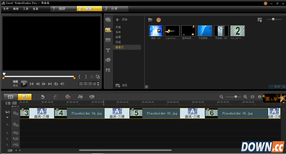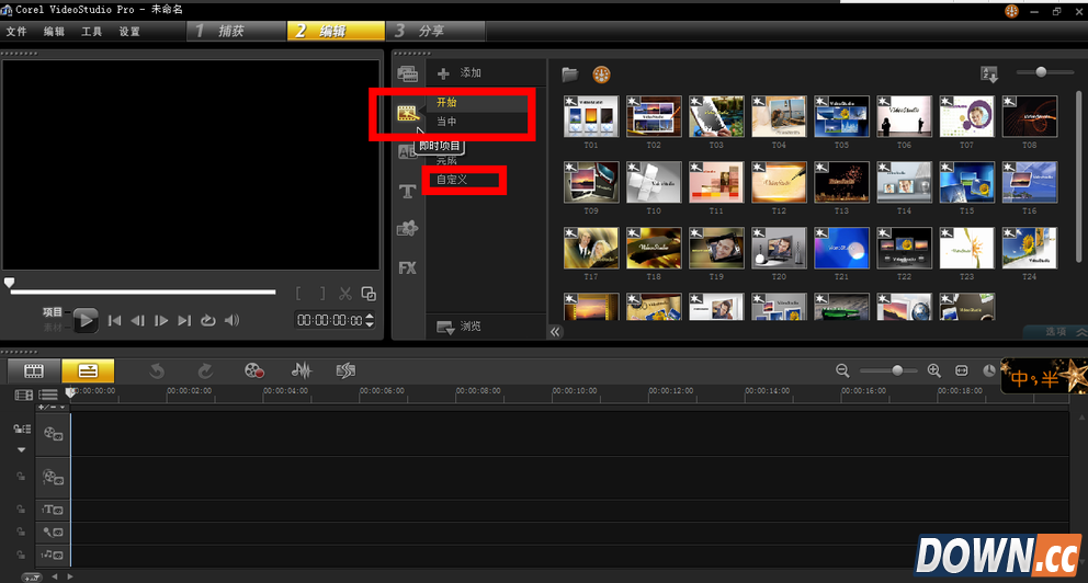 会声会影x5模板导入的方法。打开会声会影X5软件,找到“即时项目”,选着自定义,如图