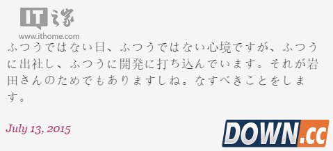 这一段文字来自名为樱井正宏的网友,他说:“这是一个不平常的日子,今天我的情绪很激动,不过,工作不能停下,游戏还得开发。如果是岩田,他也会这么做,人就应该把自己的事情做好。”